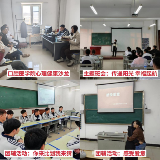 口腔醫(yī)學(xué)院依托“5·25心理健康宣傳月”開展了以“傳遞陽(yáng)光 幸福啟航”為主題的系列活動(dòng),心理健康沙龍、團(tuán)輔活動(dòng)“你來比劃我來猜、感受愛意、了解珍貴的自己”、主題班會(huì)。活動(dòng)充分聚力師生合作、家校共育,不斷創(chuàng)新和深化心育形式,引導(dǎo)廣大學(xué)生積極關(guān)注心理健康、表達(dá)心里感受,營(yíng)造了“人人關(guān)注心理健康、助人自助攜手成長(zhǎng)”的心理健康教育氛圍,培育了學(xué)生自尊、自信、自愛、陽(yáng)光積極向上的健康心態(tài)。