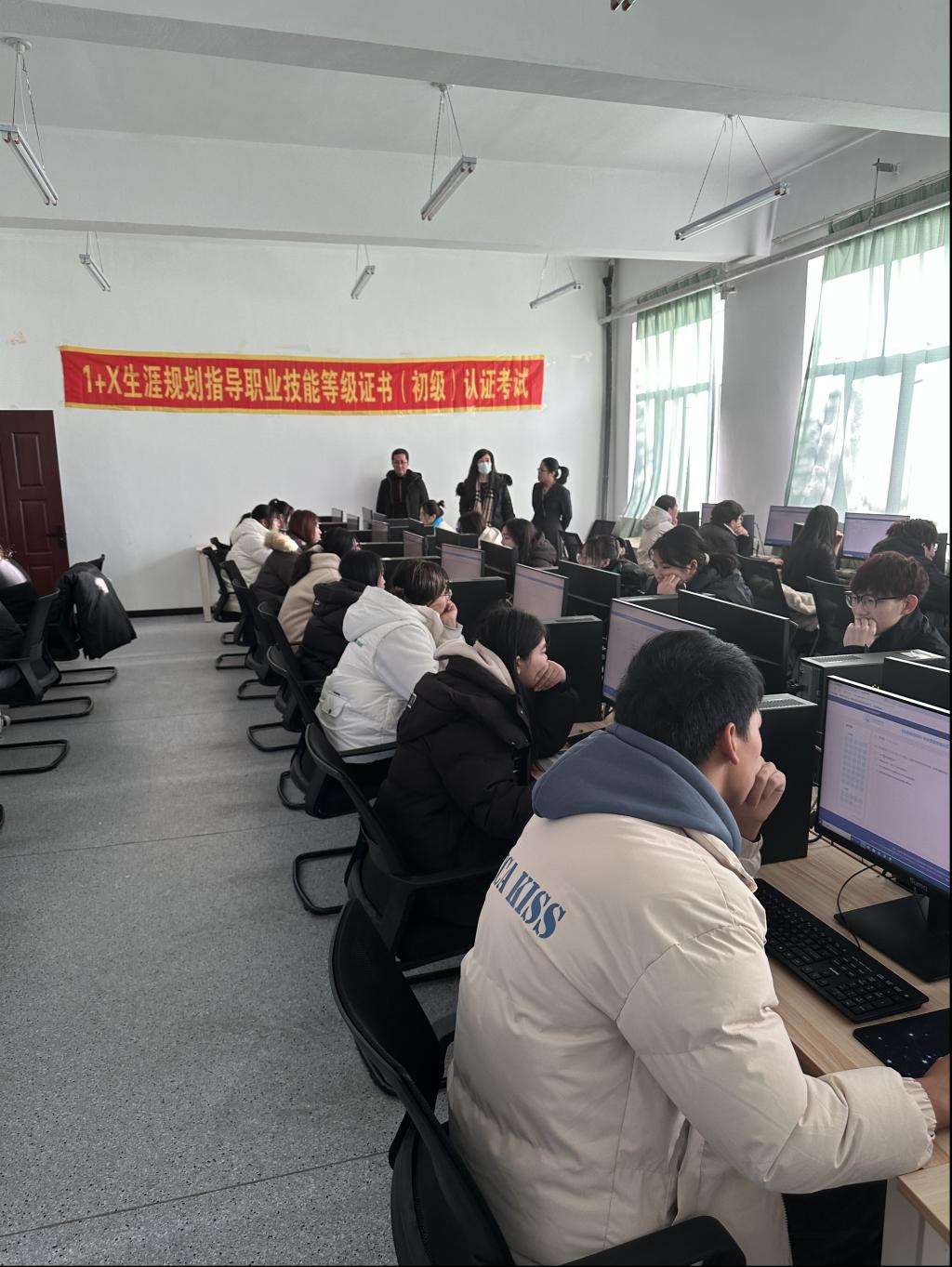 為貫徹落實(shí)國務(wù)院《國家職業(yè)教育改革實(shí)施方案》要求,構(gòu)建復(fù)合型人才培養(yǎng)模式,提升學(xué)生就業(yè)競爭力,拓寬就業(yè)渠道,12月10日我校組織142名學(xué)生參加1+X生涯規(guī)劃指導(dǎo)師職業(yè)技能等級證書考試。