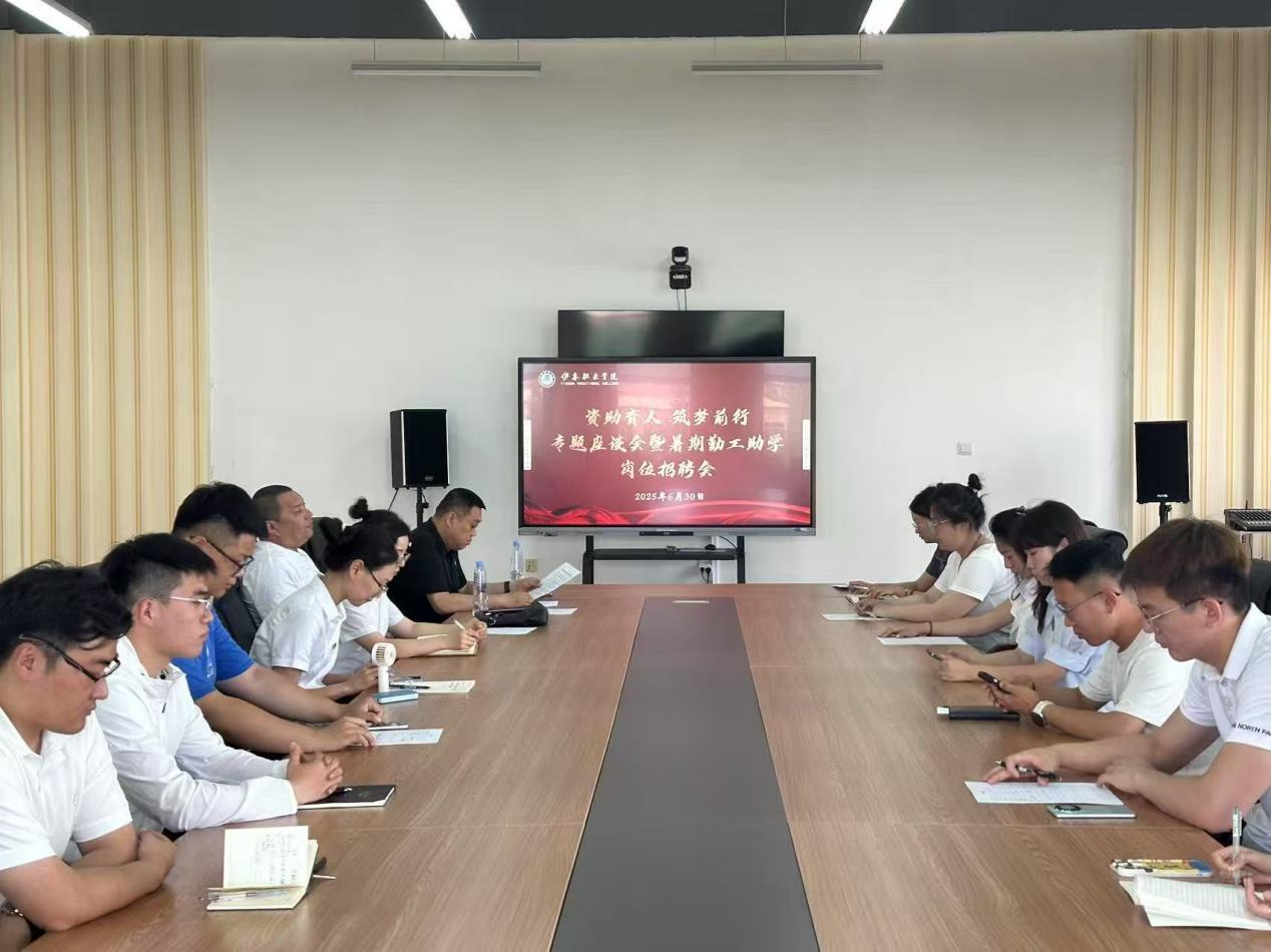 為深入貫徹國家資助政策,全面落實(shí)立德樹人根本任務(wù),提升資助育人實(shí)效,搭建學(xué)生與學(xué)校溝通交流的平臺(tái),做好暑期勤工助學(xué)崗位招聘工作,6月30日,學(xué)生處組織召開“資助育人 筑夢前行”專題座談會(huì)暨暑期勤工助學(xué)崗位招聘會(huì)。學(xué)生資助管理中心全體成員、各二級(jí)學(xué)院(部)資助專員、受助學(xué)生代表以及暑期勤工助學(xué)崗位應(yīng)聘學(xué)生參加活動(dòng)。會(huì)議由學(xué)生處學(xué)生資助管理科科長白巖主持。