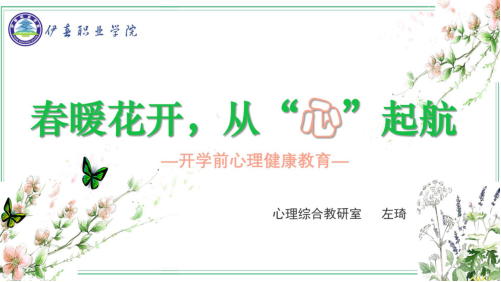 春已至,萬(wàn)物始,在這樣一個(gè)充滿生機(jī)活力的季節(jié)里,我們迎來(lái)了滿載希望的2023年春季學(xué)期,新學(xué)期,新起點(diǎn),新氣象,為幫助同學(xué)們做好開學(xué)心理調(diào)適,以輕松健康的心情邁入新學(xué)期,更好地融入校園生活,提升心理健康水平。我校在開學(xué)初期開展了以《春暖花開,從“心”起航》為主題的“心理健康教育第一課”活動(dòng)。