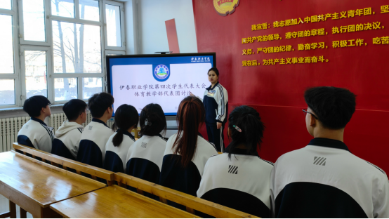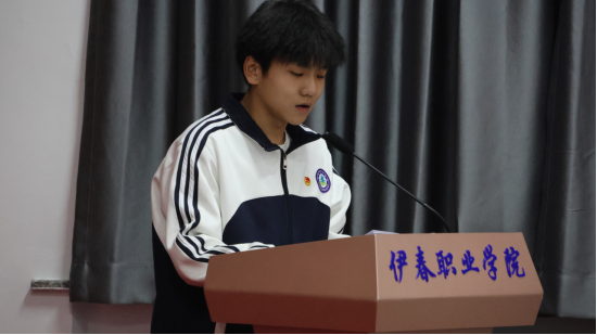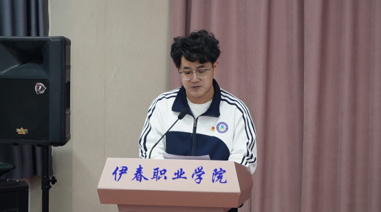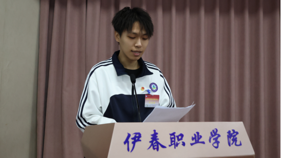 第四屆學(xué)生委員會主席團(tuán)成員孫澤寬宣讀《伊春職業(yè)學(xué)院第四次學(xué)生代表大會倡議書》