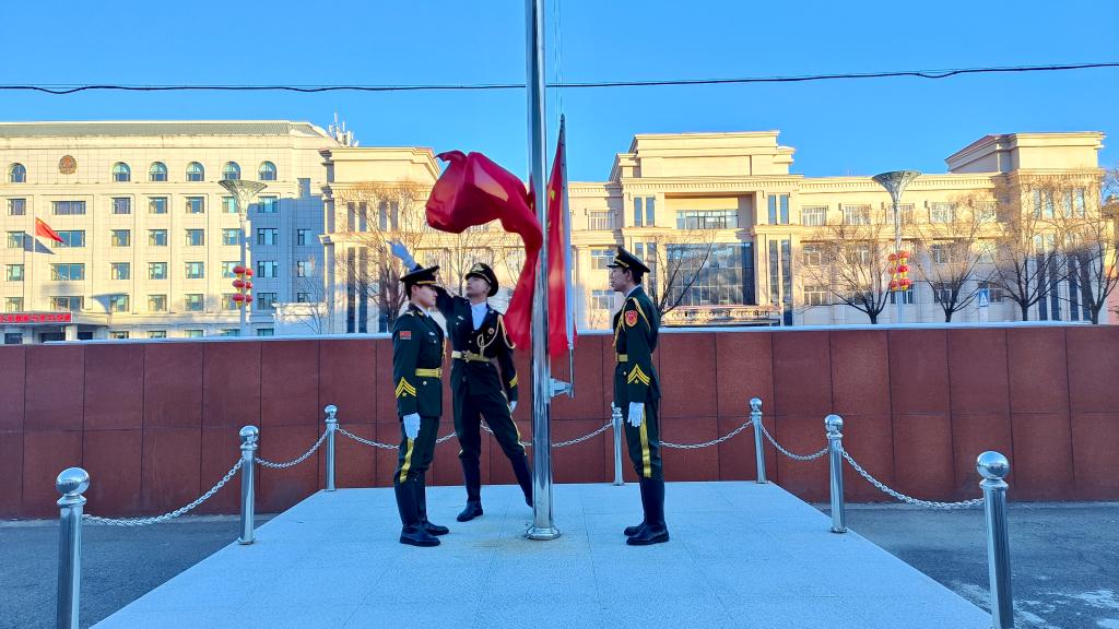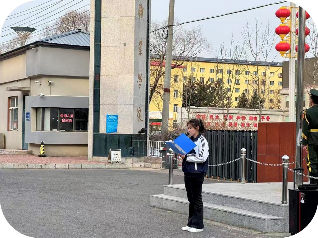 7時(shí)整,國(guó)旗護(hù)衛(wèi)隊(duì)隊(duì)員們邁著鏗鏘有力的步伐,護(hù)衛(wèi)著五星紅旗。他們身姿挺拔,眼神堅(jiān)定,展現(xiàn)出了青年一代的昂揚(yáng)風(fēng)貌。當(dāng)雄壯的國(guó)歌奏響,鮮艷的五星紅旗迎著朝陽(yáng)冉冉升起。全體師生行注目禮,高唱國(guó)歌,心中滿(mǎn)是對(duì)祖國(guó)的熱愛(ài)與崇敬之情。教師代表劉萬(wàn)春和學(xué)生代表赫美玉分別在國(guó)旗下激情洋溢地發(fā)言。