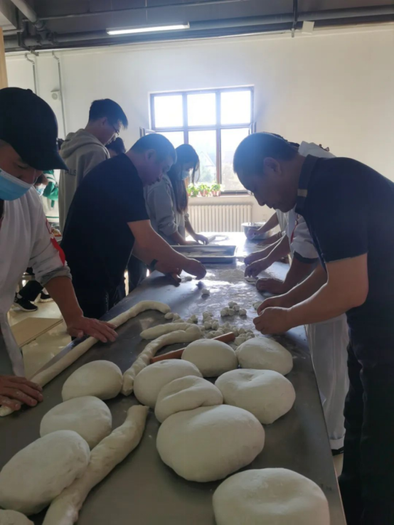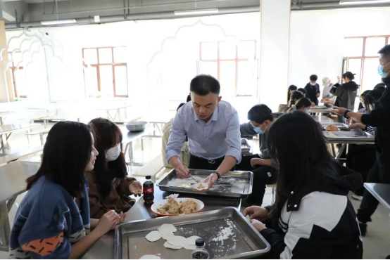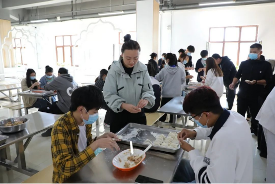活動(dòng)正式開始,師生熱熱鬧鬧地開始包餃子啦!