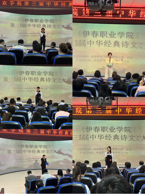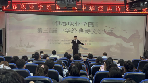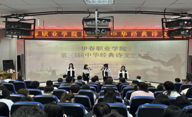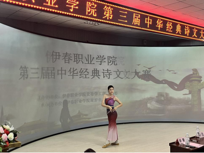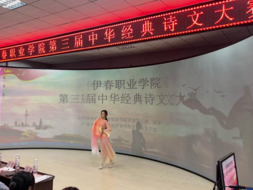 12月13日,伊春職業(yè)學(xué)院第三屆中華經(jīng)典詩文誦讀大賽成功舉辦。本次比賽由伊春職業(yè)學(xué)院黨委學(xué)工部、團委主辦,旅游商務(wù)學(xué)院承辦。學(xué)院黨委委員、宣傳部部長節(jié)楊,黨委學(xué)工部部長張楊,黨委學(xué)工部副部長、團委書記丁利偉蒞臨本次大賽。旅游商務(wù)學(xué)院黨支部書記、院長趙莉莉,黨支部副書記王寶才,交通服務(wù)教研室主任汪雯雯,旅游商務(wù)學(xué)院全體教師及部分同學(xué)參加了本次活動。
