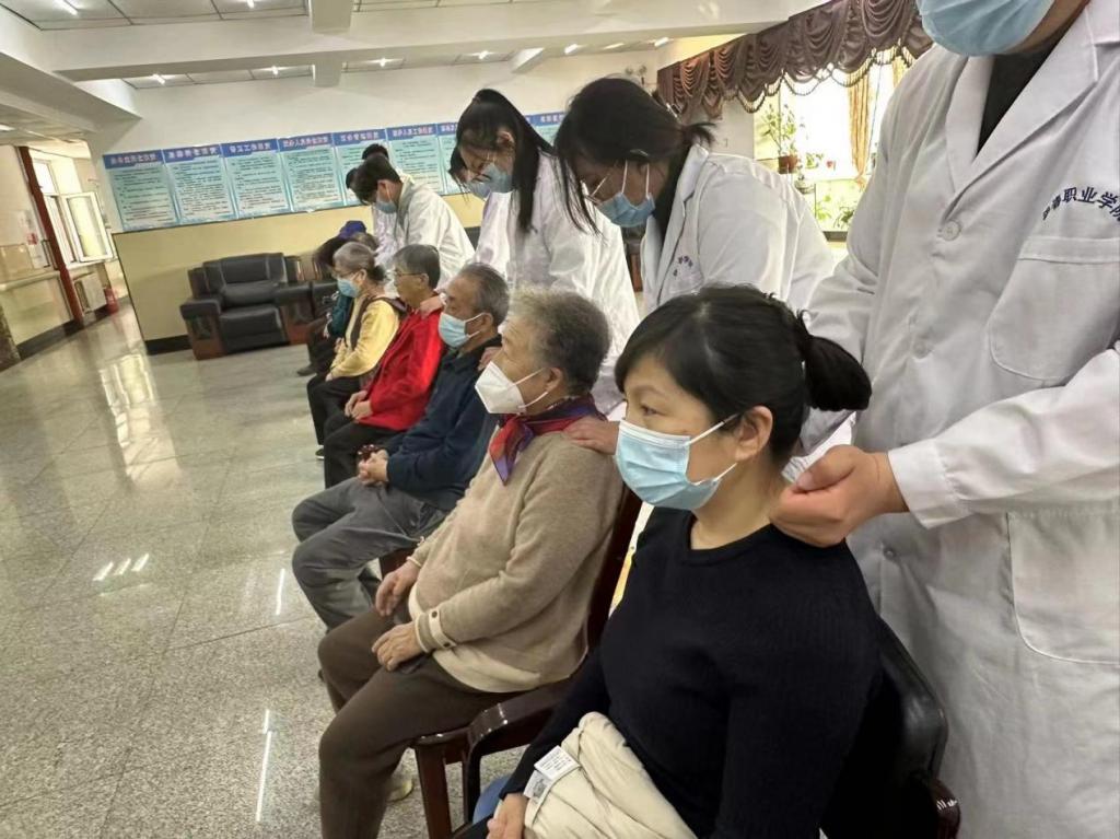 活動中,我們的志愿者與老人交流中得知老人在這里生活條件雖好,但卻缺少兒女的陪伴。志愿者們一起陪老人促膝交談,同他們聊家常,噓寒問暖,詢問老人們的衣食起居和身體狀況,并用他們所學得技能幫助老人緩解病痛。志愿者隊伍的同志們用真切的行動讓老人們感受到了愛和溫暖。