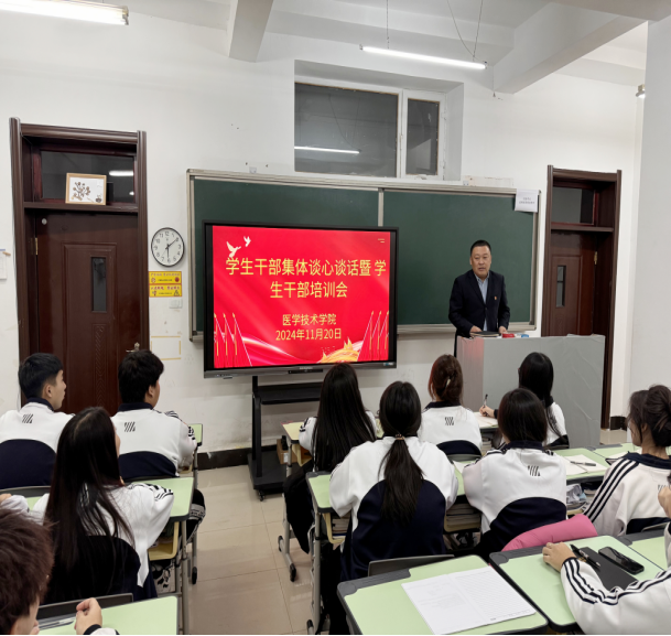 為進(jìn)一步做好學(xué)生干部培訓(xùn)工作,強(qiáng)化思想引領(lǐng),充分發(fā)揮學(xué)生干部的示范帶頭作用,加強(qiáng)學(xué)生干部和學(xué)院間的橋梁紐帶作用,持續(xù)加強(qiáng)學(xué)風(fēng)建設(shè),推進(jìn)學(xué)生干部隊(duì)伍建設(shè),11月20日,我院在一號(hào)教學(xué)樓222教室舉行院黨支部書記與學(xué)生干部集體談心談話暨學(xué)生干部培訓(xùn)會(huì)。院黨支部書記孫曉會(huì)、部分輔導(dǎo)員老師以及全體學(xué)生干部參加本次活動(dòng)。