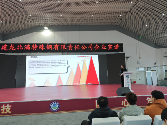 舉辦建龍北滿特殊鋼有限責(zé)任公司(簡(jiǎn)稱建龍北滿特鋼)企業(yè)宣講會(huì)及學(xué)生交流活動(dòng)。