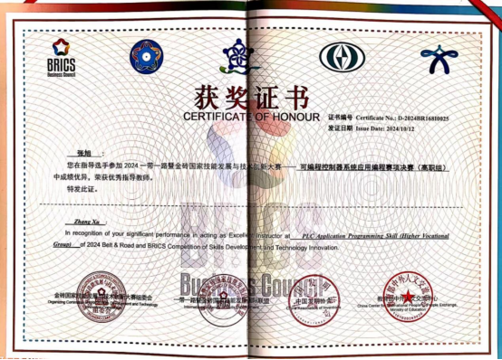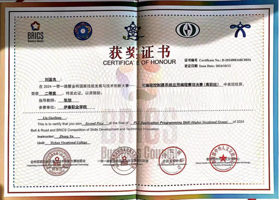 10月9日-12日,在2024年一帶一路暨金磚國家技能發(fā)展與技術(shù)創(chuàng)新大賽之可編程控制器系統(tǒng)應(yīng)用編程賽項國內(nèi)決賽中,工程應(yīng)用技術(shù)代表隊榮獲二等獎(銀牌)。
