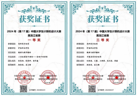 學(xué)院秉持“以賽促教、以賽促學(xué)”的理念,精心構(gòu)建“課證賽融通”的創(chuàng)新人才培養(yǎng)模式,全力推動(dòng)學(xué)生專業(yè)技能與綜合素質(zhì)的協(xié)同提升。學(xué)院積極組織學(xué)生參加“1+X”考試、WPS技能考試,實(shí)現(xiàn)“教學(xué)內(nèi)容與職業(yè)標(biāo)準(zhǔn)對(duì)接、實(shí)訓(xùn)過程與崗位需求同步”。近年來,我院在教育教學(xué)與實(shí)踐創(chuàng)新領(lǐng)域成果豐碩,充分彰顯了學(xué)院卓越的育人成效與師生過硬的專業(yè)素養(yǎng)。教師在“一帶一路”金磚國家職業(yè)技能大賽、黑龍江省教育教學(xué)能力大賽中榮獲三等獎(jiǎng)5 項(xiàng)。學(xué)生在黑龍江省教育廳主辦的學(xué)生技能大賽、2024年中國大學(xué)生計(jì)算機(jī)設(shè)計(jì)大賽黑龍江省賽、“挑戰(zhàn)杯”黑龍江省大學(xué)生創(chuàng)業(yè)計(jì)劃等競賽中,榮獲一等獎(jiǎng)2項(xiàng)、二等獎(jiǎng)5項(xiàng)、三等獎(jiǎng)10項(xiàng)、金獎(jiǎng)2項(xiàng)、銅獎(jiǎng)3項(xiàng)、銀獎(jiǎng)2項(xiàng)的好成績。
