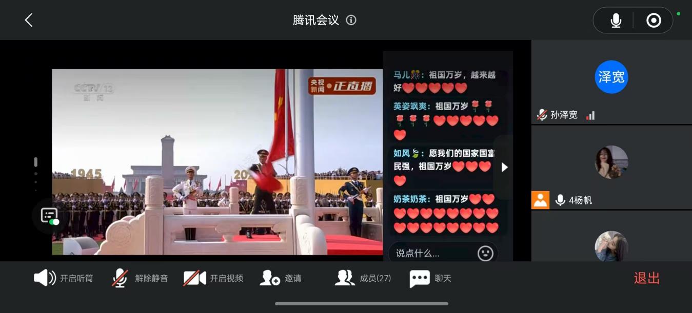 大家神情莊重,認(rèn)真聆聽習(xí)近平總書記在大會上發(fā)表的重要講話并觀看閱兵式。閱兵式上強大的陣容、恢弘的氣勢,讓大家熱血沸騰、心潮澎湃,深深為生活在這樣一個強大、和平的國度而感到驕傲與自豪。