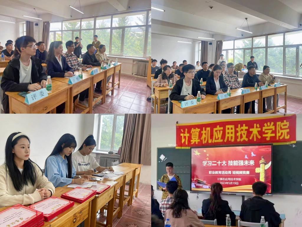 (二)“用技能記錄青春片段、用創(chuàng)意書寫美好未來”,開展職業(yè)教育主題短視頻大賽。我院緊扣活動(dòng)周主題,5月10日至5月19日期間舉辦職業(yè)教育短視頻大賽。本次競(jìng)賽分為初賽和決賽,引導(dǎo)學(xué)生用短視頻的形式創(chuàng)造出形式新穎、內(nèi)容豐富、生動(dòng)活潑的創(chuàng)意視頻,共分為黨建、技能、職業(yè)、數(shù)字、青春、故事、創(chuàng)意、冰雪等主題板塊。