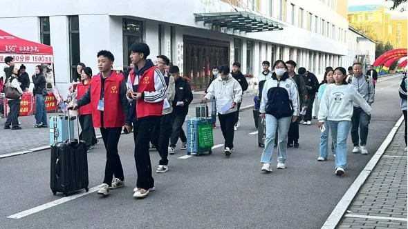 迎新現(xiàn)場(chǎng),氣氛熱烈。新生輔導(dǎo)員、學(xué)生志愿者一早來(lái)到報(bào)到現(xiàn)場(chǎng),以飽滿的熱情迎接新同學(xué)的到來(lái)。他們忙碌地穿梭在人群中,為新同學(xué)指引方向、搬運(yùn)行李、解答疑惑。
