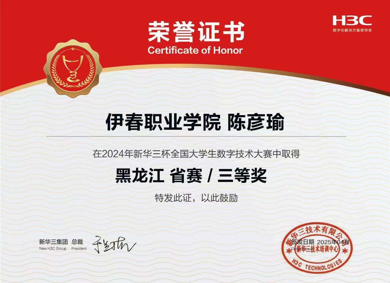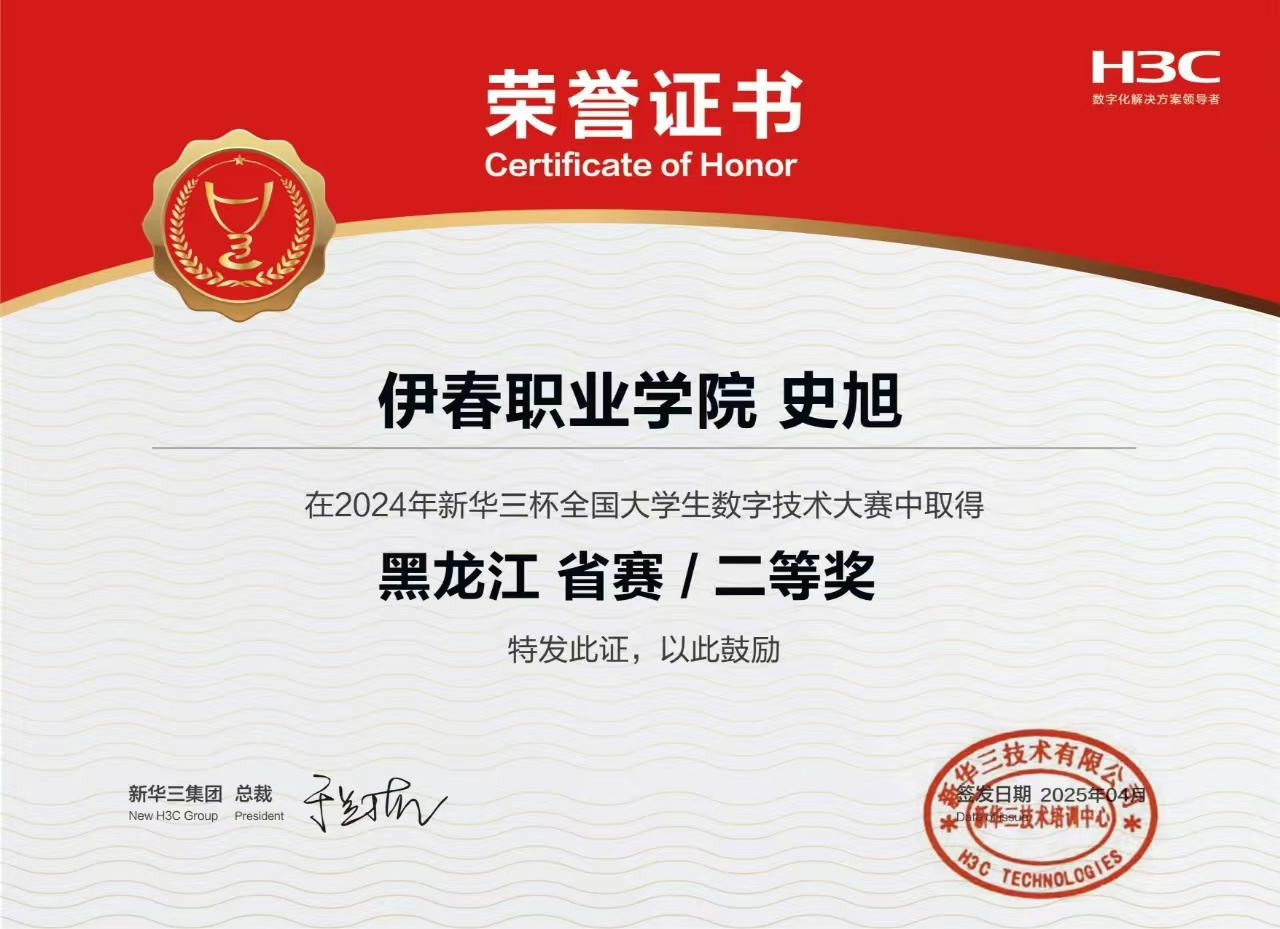 3月15日,2024-2025年第十四屆“新華三杯”全國大學生數(shù)字技術(shù)大賽黑龍江賽區(qū)復賽圓滿落幕。我院2023級計算機應(yīng)用技術(shù)專業(yè)學生史旭、陳彥瑜在比賽中分別榮獲二等獎、三等獎的好成績。