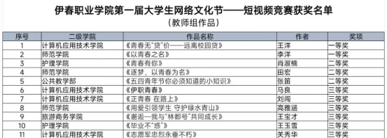 6月1日——6月30日伊春職業(yè)學(xué)院第一屆大學(xué)生網(wǎng)絡(luò)文化節(jié)第一階段短視頻競(jìng)賽共有101部作品參與角逐。