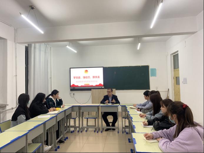王寶才首先向參會人員介紹學習黨史的重大意義,之后帶領(lǐng)大家一起學習解讀了校團委下發(fā)的《“學黨史、強信念、跟黨走”主題團干部講黨史、革命故事活動方案》,對學習活動提出了希望和要求。
