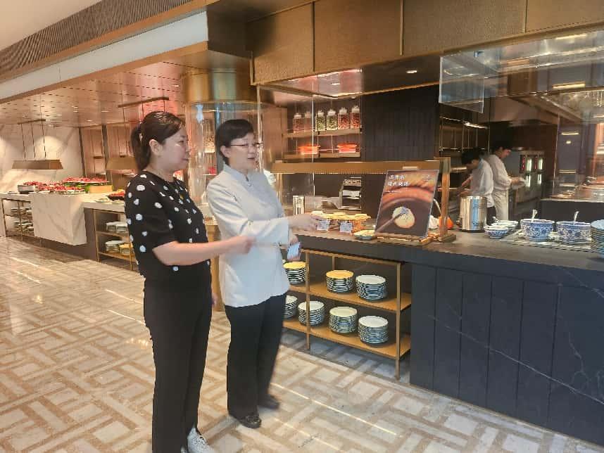 胡萍副院長一行實地參觀黃龍飯店前廳、餐飲、客房等核心部門,重點了解智慧酒店管理系統(tǒng)、VIP接待標準等數(shù)字化服務(wù)場景,現(xiàn)場觀摩企業(yè)標準化服務(wù)流程。