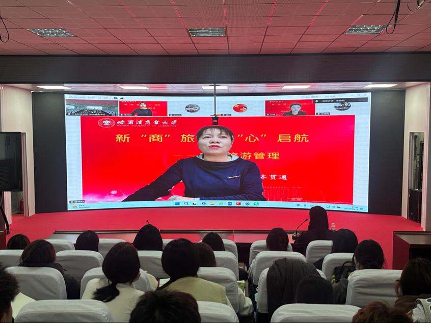 會(huì)議伊始,李曉陽(yáng)為學(xué)生們梳理專業(yè)價(jià)值與發(fā)展路徑。她圍繞“旅游管理能做什么”展開分享,介紹了哈商大在旅游業(yè)及相關(guān)領(lǐng)域的人才培養(yǎng)成果,強(qiáng)調(diào)旅游管理是傳遞文化與溫度的重要紐帶。