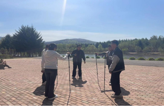 當(dāng)天上午8點,大家根據(jù)通知內(nèi)容帶上所需物品在學(xué)院教學(xué)樓一樓集合,所有人在我院王森老師的帶領(lǐng)下來到了木雕園。到達木雕園后,王森老師給同學(xué)們講解了登山杖的種類以及正確使用方法。