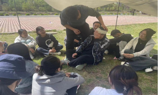 實訓(xùn)課上,王老師圍繞課程本身從戶外旅游行業(yè)發(fā)展實際情況出發(fā),組織大家利用登山杖構(gòu)建娛樂游戲“不倒森林”。