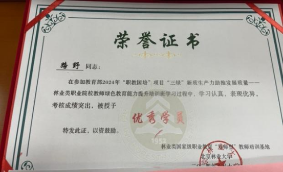 2024年8月,“職教國培”項(xiàng)目“三綠”新質(zhì)生產(chǎn)力助推發(fā)展質(zhì)量——林業(yè)類職業(yè)院校教師綠色教育能力提升培訓(xùn)班在北京開班。本次培訓(xùn)由北京林業(yè)大學(xué)社會(huì)服務(wù)和綜合研究部牽頭、繼續(xù)教育學(xué)院承辦,旨在提升林業(yè)類職業(yè)院校教師的綠色教育能力,推動(dòng)林業(yè)職業(yè)教育的高質(zhì)量發(fā)展。