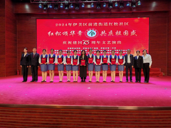 9月26日,伊春市伊美區(qū)前進(jìn)街道紅松社區(qū)舉行了慶祝中華人民共和國成立75周年文藝演出。此次活動不僅是對新中國輝煌歷程的深情回顧,也是對社區(qū)內(nèi)杰出貢獻(xiàn)者的表彰與致敬。伊春職業(yè)學(xué)院旅游商務(wù)學(xué)院積極服務(wù)地方發(fā)展,選派10名經(jīng)驗豐富、服務(wù)禮儀功底扎實的學(xué)生,在王廷、賈璇老師的帶領(lǐng)下,為本次活動提供了全程禮儀服務(wù)。