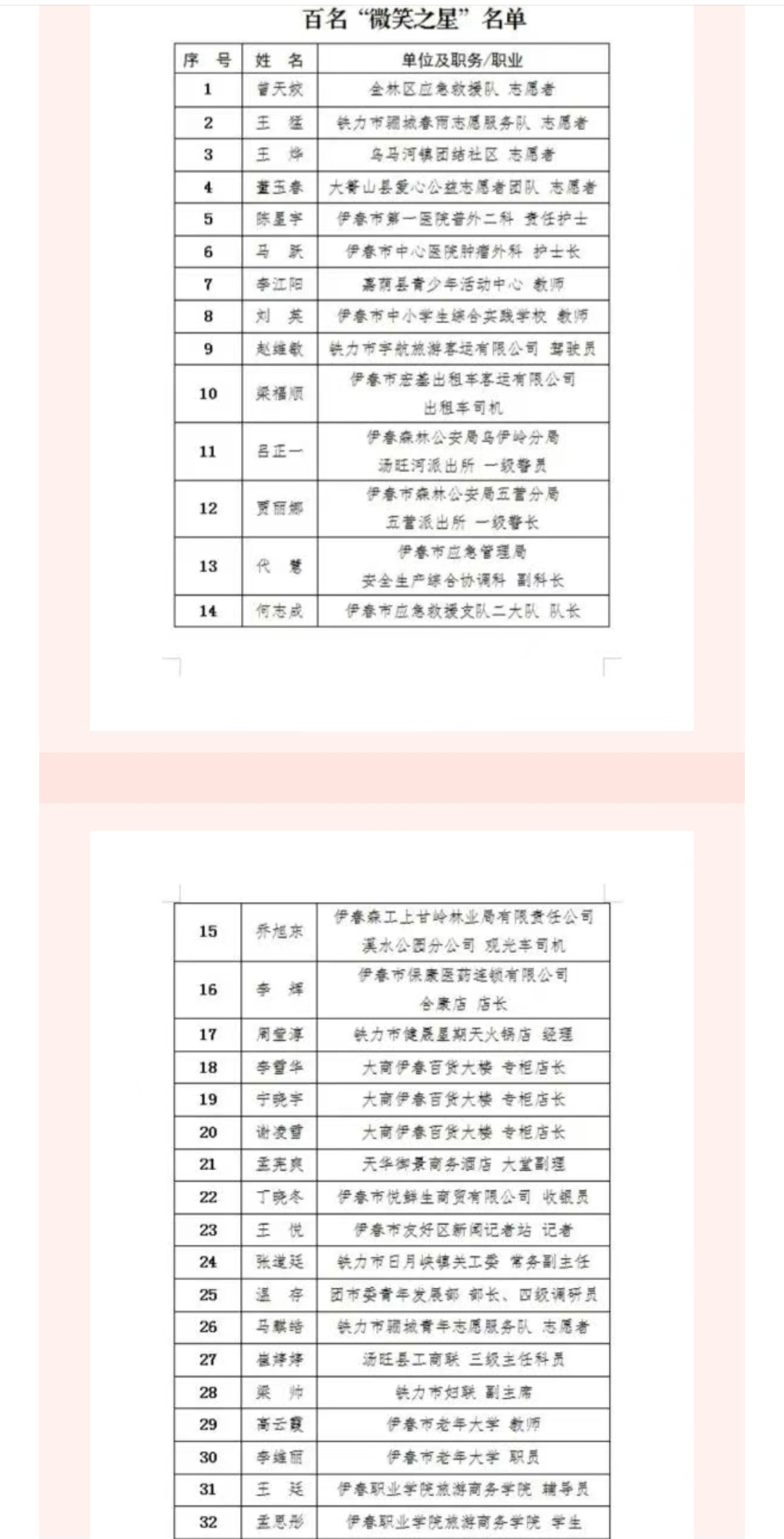 近日,伊春市“微笑伊春·暖客之城”百名“微笑之星”評(píng)選結(jié)果揭曉,旅游商務(wù)學(xué)院教師王廷和2023級(jí)森林生態(tài)旅游與康養(yǎng)專業(yè)學(xué)生孟思彤成功入選,榮獲“微笑之星”稱號(hào)。