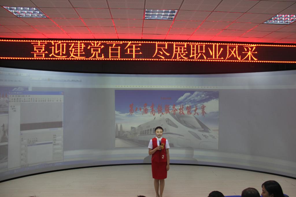 本屆高鐵服務(wù)技能大賽在以往的基礎(chǔ)上不斷創(chuàng)新發(fā)展,組織形式更為新穎靈活,展示內(nèi)容上更加豐富,參加指導(dǎo)教師人數(shù)和學(xué)生人數(shù)為辦賽以來人數(shù)最多,選手們?yōu)榱嗽诖筚愔懈玫恼故咀晕摇㈠憻捵晕?,而互相學(xué)習(xí)、互相交流,增強(qiáng)了溝通協(xié)調(diào)能力和團(tuán)隊(duì)合作能力,使所有參賽選手的技能水平均得到了進(jìn)一步提高。大賽中各組選手創(chuàng)新的禮儀展示、標(biāo)準(zhǔn)的語言表達(dá)、精彩的才藝表演都給師生們留下了深刻的印象。