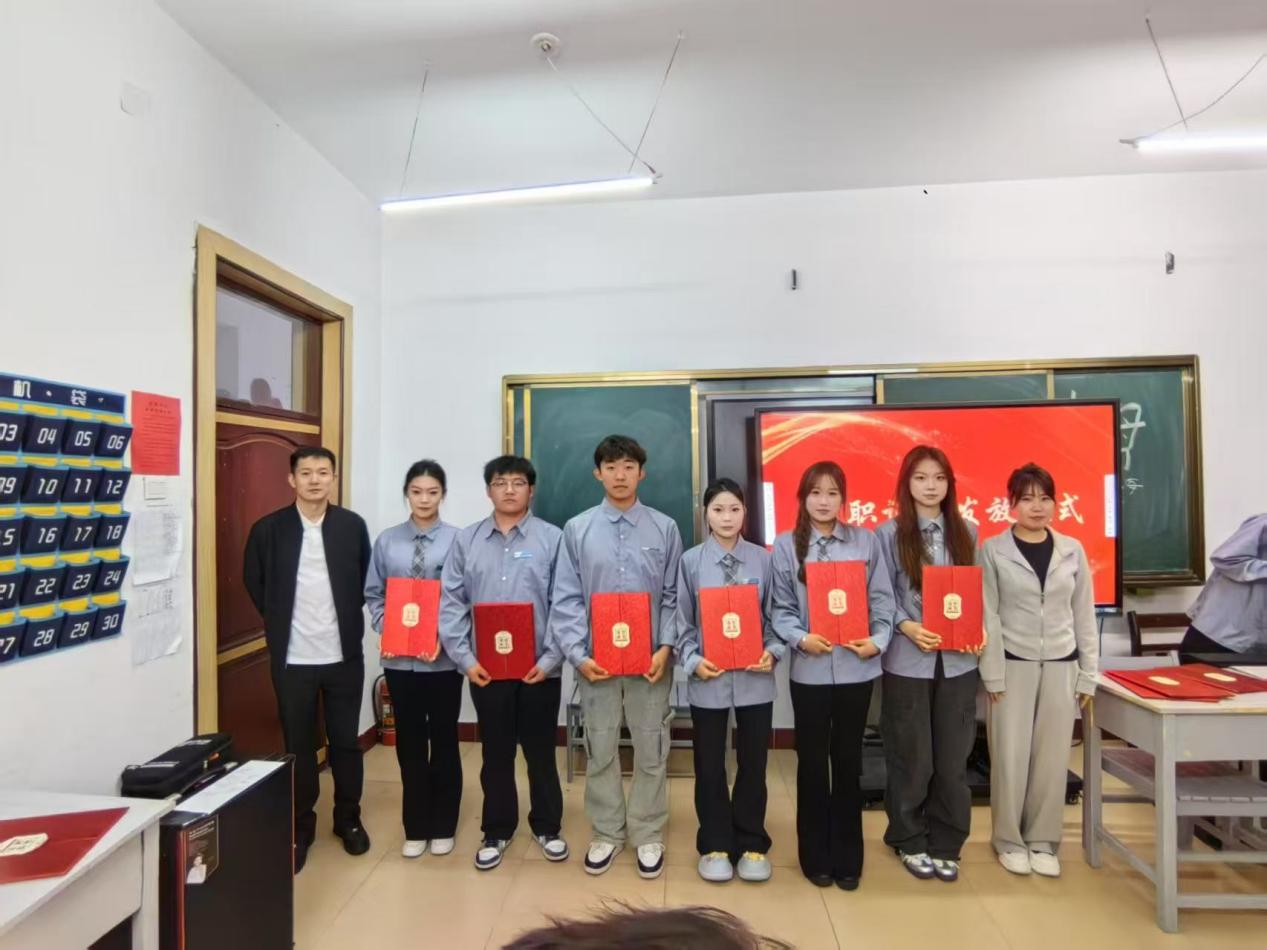 大會(huì)第三項(xiàng)舉行了隆重的任職證明頒發(fā)儀式,以此表彰第四屆學(xué)生會(huì)成員的卓越貢獻(xiàn)。過(guò)去一年,他們以高度的責(zé)任感和飽滿(mǎn)的熱情履職盡責(zé),在各項(xiàng)工作中留下了堅(jiān)實(shí)而閃亮的足跡。在熱烈的掌聲中,黨支部副書(shū)記張健、團(tuán)總支書(shū)記李洋、輔導(dǎo)員高雅涵老師共同為第四屆學(xué)生會(huì)主席團(tuán)、辦公室、宣傳部、學(xué)習(xí)部、生活權(quán)益部、社會(huì)實(shí)踐部、體育部、文藝部等代表頒發(fā)了任職證明。這份證明不僅是對(duì)過(guò)往辛勤付出的肯定,更是無(wú)私奉獻(xiàn)精神的榮譽(yù)見(jiàn)證,激勵(lì)著后來(lái)者繼續(xù)前行。