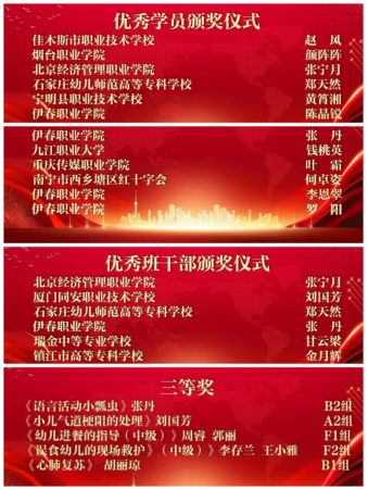 受疫情影響,本次培訓所有項目均在線上進行,四名教師高度重視,專心志致、一絲不茍全程參訓,“不落一課,爭做優(yōu)秀”是她們的目標,“全程自律,勤學苦練”是她們的學風。經(jīng)過一周的打磨比拼,功夫不負有心人,我院四名教師在本期二百多名學員中脫穎而出,全部榮獲“優(yōu)秀學員”稱號,受到主辦方、教師團隊和同期參訓學員的一致認可和高度好評。張丹老師同時榮獲“優(yōu)秀班干部”稱號,并在教學能力大賽中以優(yōu)異的表現(xiàn)榮獲三等獎。四名教師圓滿完成培訓任務,進一步壯大了我院1+X幼兒照護考培師資隊伍,也用辛勤和汗水為學院、為學校贏得了榮譽。