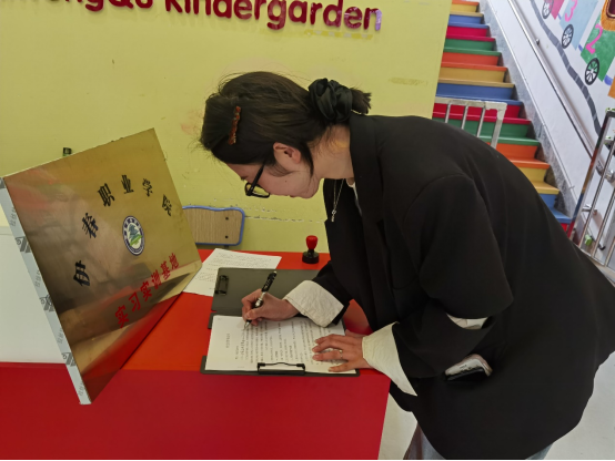 王海峰和企業(yè)負(fù)責(zé)人就企業(yè)用人需求、人才培養(yǎng)、課程改革、頂崗實(shí)習(xí)等方面進(jìn)行了深入交流。接著,雙方簽訂了合作協(xié)議并進(jìn)行了授牌儀式,我院為冷婧園長(zhǎng)頒發(fā)了行業(yè)導(dǎo)師聘書。