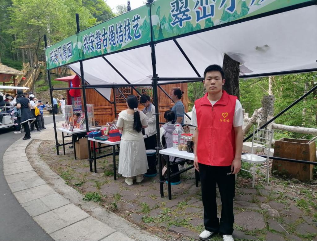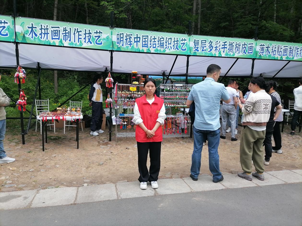 活動(dòng)現(xiàn)場(chǎng),樺樹皮制作、木雕、魚皮畫等極具地域特色的非遺項(xiàng)目驚艷亮相,琳瑯滿目的非遺工藝品吸引了眾多市民駐足欣賞?;顒?dòng)前期,學(xué)生志愿者們齊心協(xié)力完成了現(xiàn)場(chǎng)場(chǎng)景物品的布置與擺放工作,從桌椅的整齊排列,到非遺作品的精美陳列?;顒?dòng)期間,志愿者們穿梭在人群中,耐心維護(hù)現(xiàn)場(chǎng)秩序,引導(dǎo)市民有序參觀體驗(yàn),保障活動(dòng)有條不紊地進(jìn)行。面對(duì)好奇的市民,他們化身“文化使者”,詳細(xì)介紹非遺產(chǎn)品的歷史淵源、制作工藝和文化內(nèi)涵,讓更多人了解伊春豐富的非遺文化資源。