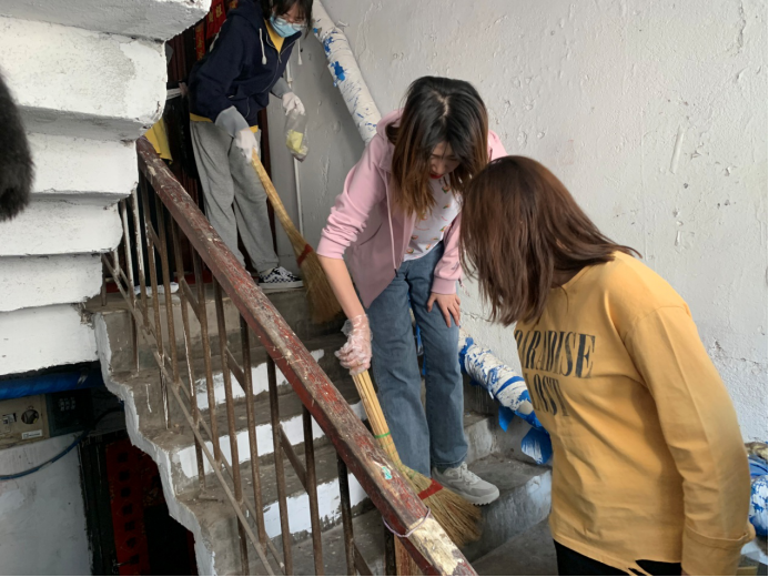 活動中,學(xué)生會干部們自主劃分5個志愿小組,分別拿著垃圾口袋、鐵鍬、鏟子、笤帚,對衛(wèi)生死角、衛(wèi)生薄弱點(diǎn)進(jìn)行排查清理。同學(xué)們不怕臟、不怕累、密切配合、干得火熱朝天,使小區(qū)的面貌煥然一新。