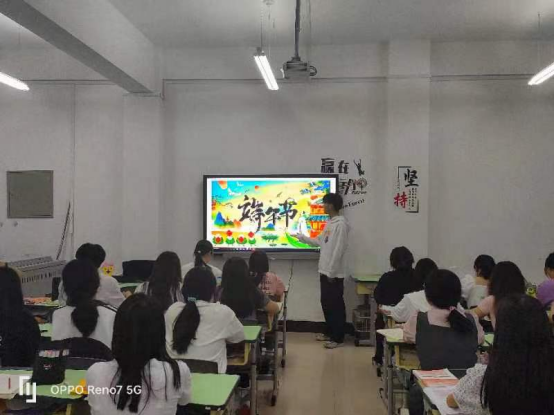 會上,團支書通過圖文并茂的方式,追溯了端午節(jié)的由來,講述了屈原的故事,讓同學(xué)們明白端午節(jié)不只是粽子節(jié)、龍舟節(jié),更是民族節(jié)、愛國節(jié)。為進一步發(fā)揮端午節(jié)的思想熏陶和文化教育功能,各班在班會上同步開展了以“端午·家國情懷”為主題的知識競賽。同學(xué)們積極參與、認真作答,在競賽中體悟端午節(jié)文化的深厚內(nèi)涵,汲取向上的精神力量。
