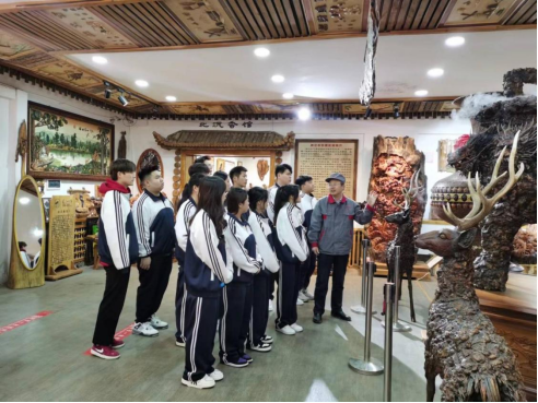 2024年3月31日上午,師范學(xué)院黨支部書記金鈴玲、院長王海峰、藝術(shù)設(shè)計(jì)教研室主任曲偉、工藝美術(shù)品設(shè)計(jì)專業(yè)的師生們一同前往伊春市美江木業(yè)有限公司調(diào)研走訪。企業(yè)負(fù)責(zé)人丁利娟熱情接待了我院師生,并帶領(lǐng)大家參觀了美江木藝展覽館、非物質(zhì)文化遺產(chǎn)展示廳、工藝品雕刻車間等。