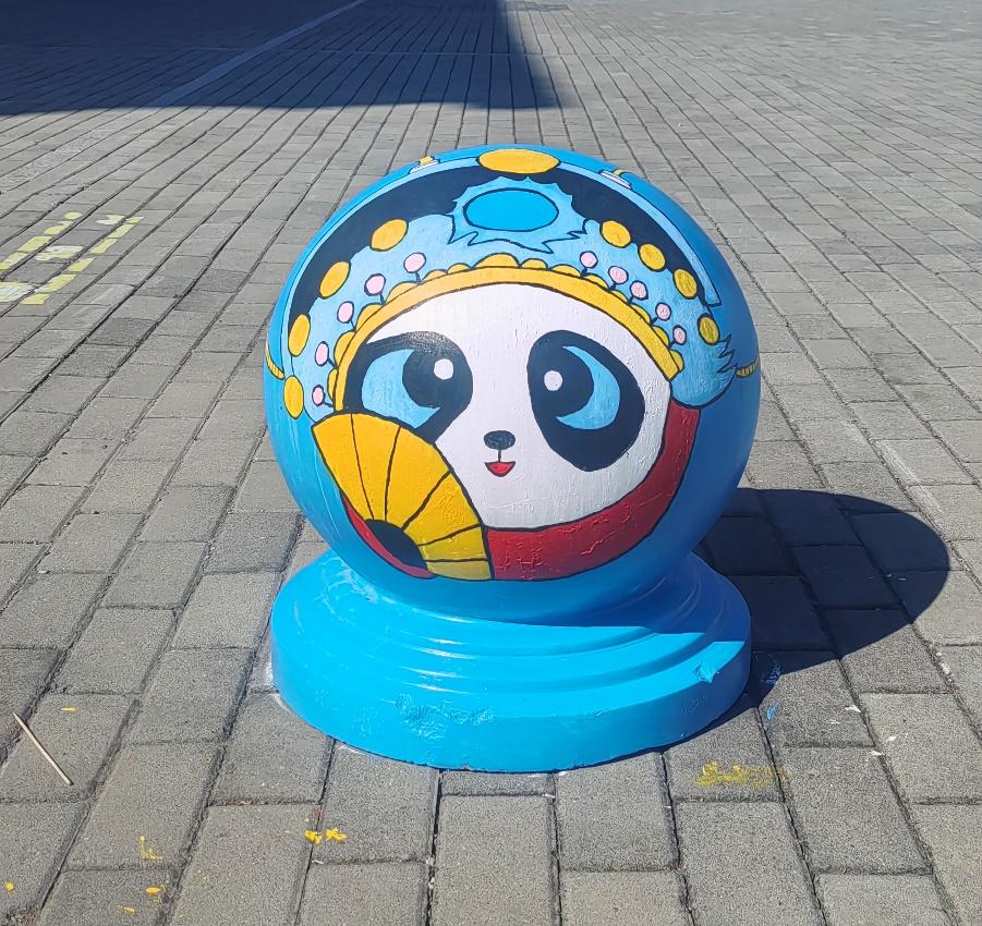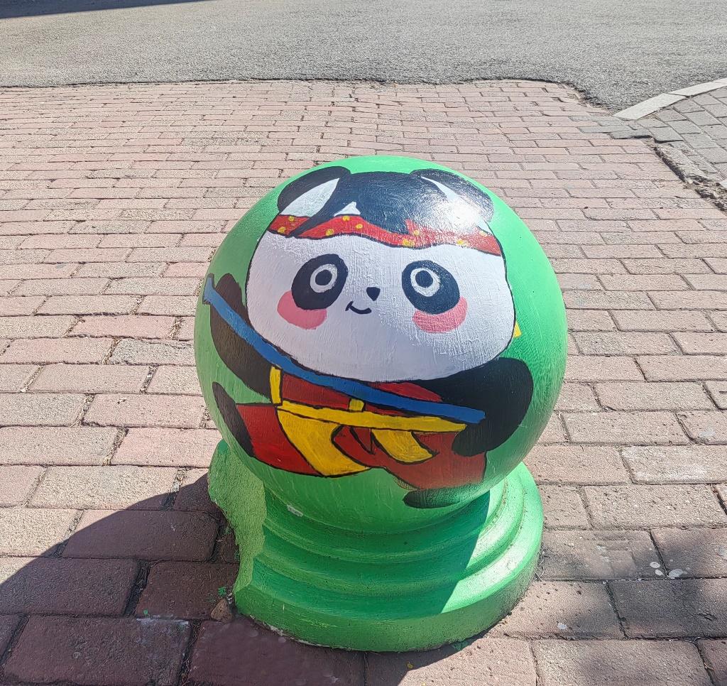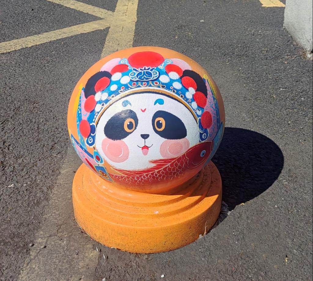 憨態(tài)可掬的熊貓形象躍然于石墩之上,學(xué)生們用畫筆將熊貓的可愛與靈動展現(xiàn)得淋漓盡致。熊貓作為國寶,深受中國人民的喜愛,是民族情感的重要寄托。它喚起了人們對國家和民族的熱愛之情,增強(qiáng)了民族自豪感和凝聚力,讓人們在文化認(rèn)同和情感共鳴中緊密相連。熊貓的形象承載著深厚的文化底蘊(yùn),如今以手繪的形式裝點(diǎn)校園,讓同學(xué)們在日常學(xué)習(xí)生活中,便能感受到傳統(tǒng)文化的親切與美好。