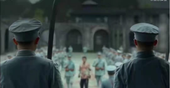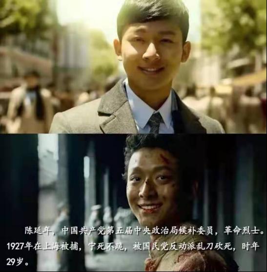 轉(zhuǎn)眼一生,轉(zhuǎn)身一世。鮮衣怒馬的少年,現(xiàn)實(shí)里,他們步伐堅(jiān)定、笑容燦爛、意氣風(fēng)發(fā)、欲遠(yuǎn)赴法國(guó)讀書,為國(guó)尋出路;看未來,他們步伐依舊、笑容如故、卻是滿身血污、鐐銬加身,慷慨赴刑場(chǎng)。明明上一秒還是一派暖陽(yáng)秋意、離愁依依,一轉(zhuǎn)眼血痕累累、含笑赴死。這是何等的大悲大慟! 走向光明,奔赴死亡,一生一死的對(duì)立統(tǒng)一,唯一不變的是他們的腳步一直堅(jiān)定向前,從容不迫。龍華的桃花凋零在少年盛開的年華,血水里開出燦爛的花!注定會(huì)走向犧牲的路,是赤腳淌過血河的紅色壯歌!望著兩兄弟的背影,父親陳獨(dú)秀熱淚縱橫,是此刻的離別,亦是將來的永別。鏡頭最后,陳延年烈士眺望遠(yuǎn)方的笑容,心里有火,眼里清澈有光,目光所及并非漆黑一片,仿佛已然看見一個(gè)繁榮的新中國(guó),看見中華復(fù)興時(shí)盛世的繁華!