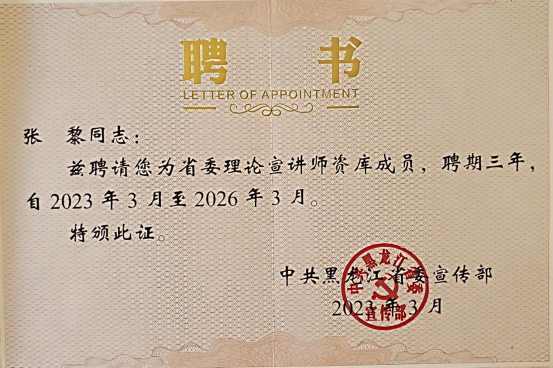 黨的二十大召開以來,思想政治教學(xué)部鼓勵(lì)廣大教師投身社會(huì)服務(wù)與理論宣講活動(dòng),先后有多名教師被聘為黑龍江省教育評(píng)估監(jiān)測(cè)專家、省優(yōu)秀指導(dǎo)教師、省創(chuàng)指委委員,黑龍江省人民監(jiān)督員、伊春市法治督察員、伊春市人大常委會(huì)立法咨詢與審查專家、黑龍江省教學(xué)能力大賽評(píng)審專家;1名教師入選黑龍江省委理論宣講師資庫、1名教師入選伊春市委宣講團(tuán);2名教師入選黑龍江省高校思想政治工作隊(duì)伍資源庫,3名教師被聘為伊春市民族團(tuán)結(jié)進(jìn)步宣講“青騎兵”成員;獲評(píng)省級(jí)大師工作室1項(xiàng),獲批伊美區(qū)非物質(zhì)文化遺產(chǎn)1項(xiàng)。