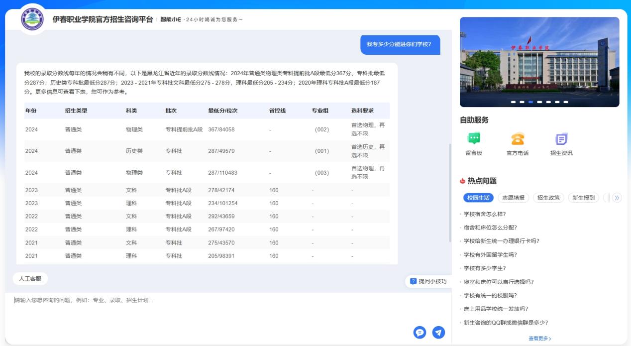 【伊春職業(yè)學(xué)院】的智能招生問答系統(tǒng)已經(jīng)華麗大變身
