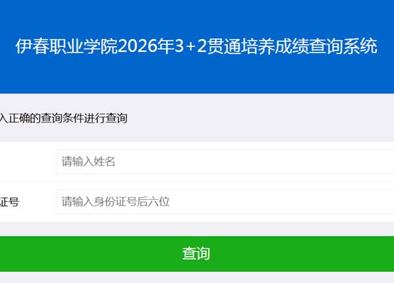 伊春職業(yè)學(xué)院2026”3+2”中高職貫通培養(yǎng)考試成績已公布,請登錄學(xué)校官網(wǎng),在“招生就業(yè)”欄目選擇“伊春職業(yè)學(xué)院2026”3+2”中高職貫通培養(yǎng)成績查詢系統(tǒng)”,憑考生本人姓名及身份證號后六位查詢考試成績。