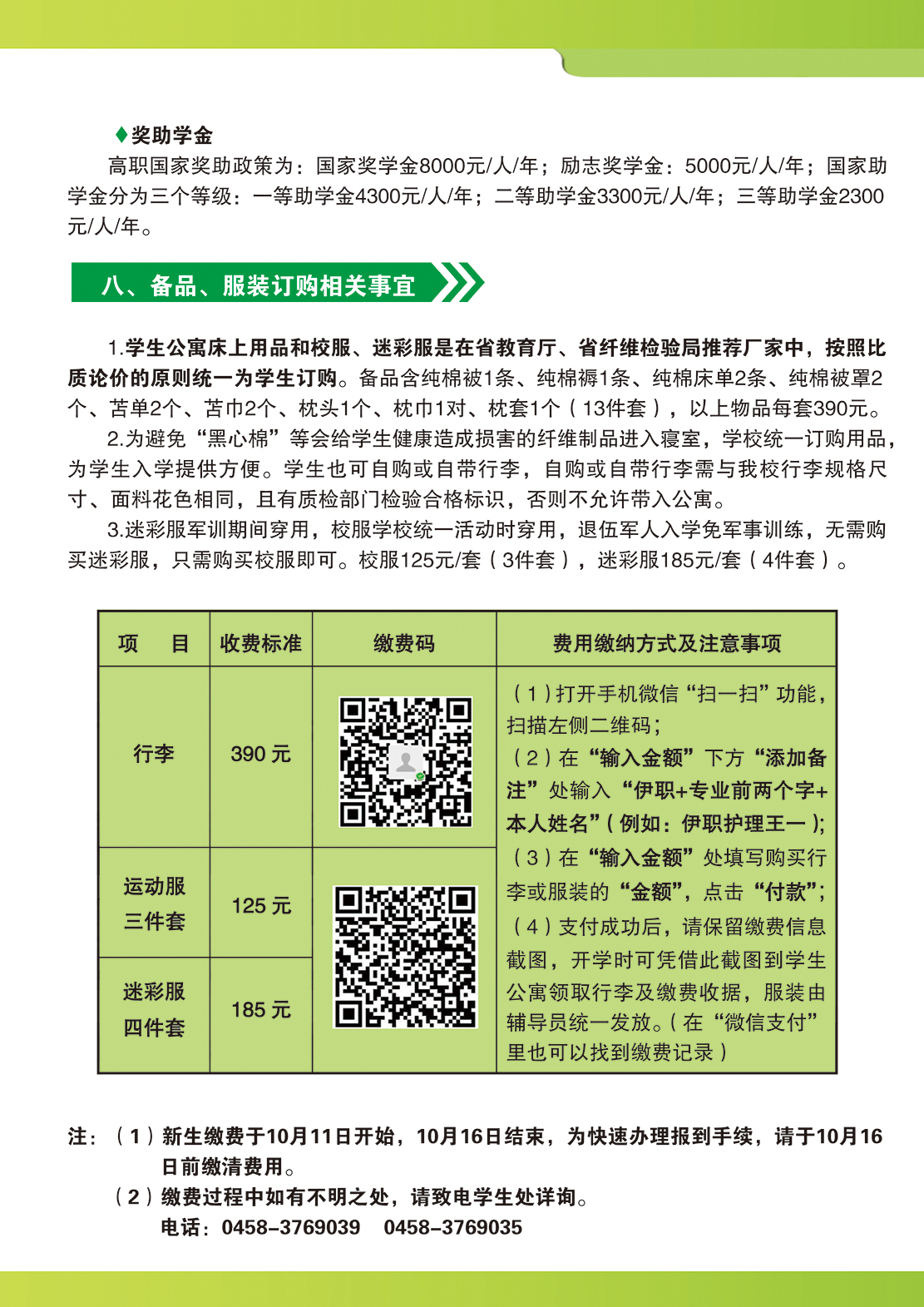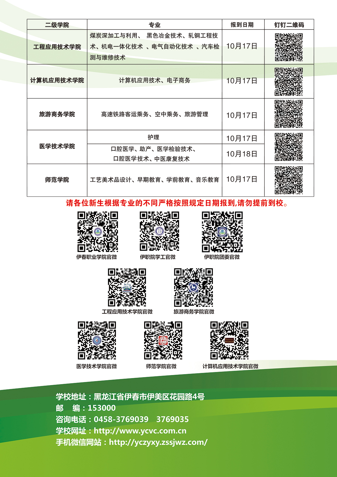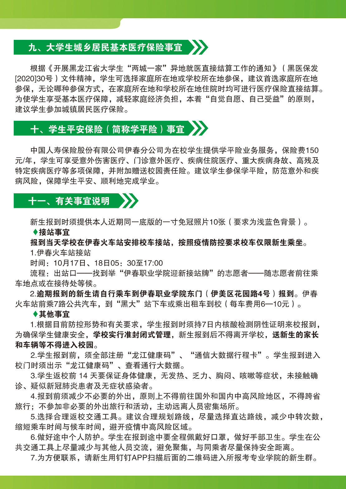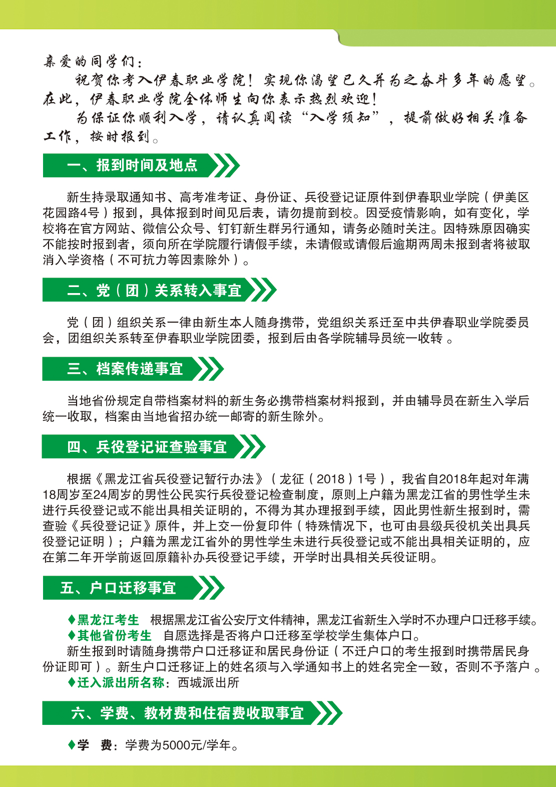 伊春職業(yè)學(xué)院2020級新生入學(xué)須知(高中起點)