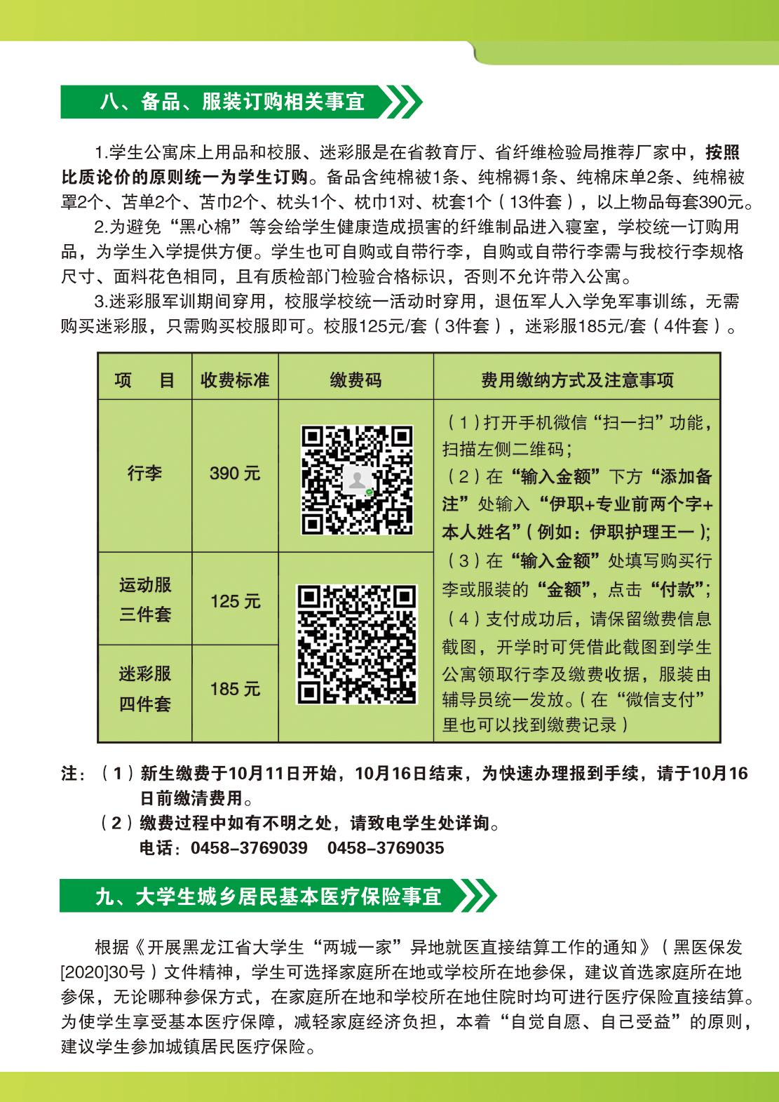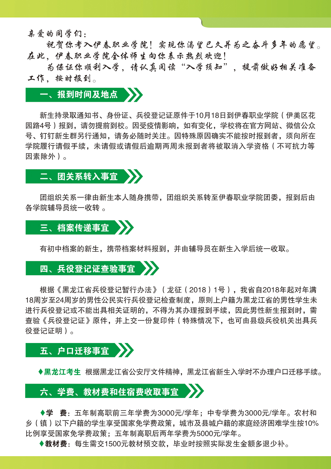 伊春職業(yè)學(xué)院2020級(jí)新生入學(xué)須知(初中起點(diǎn))
