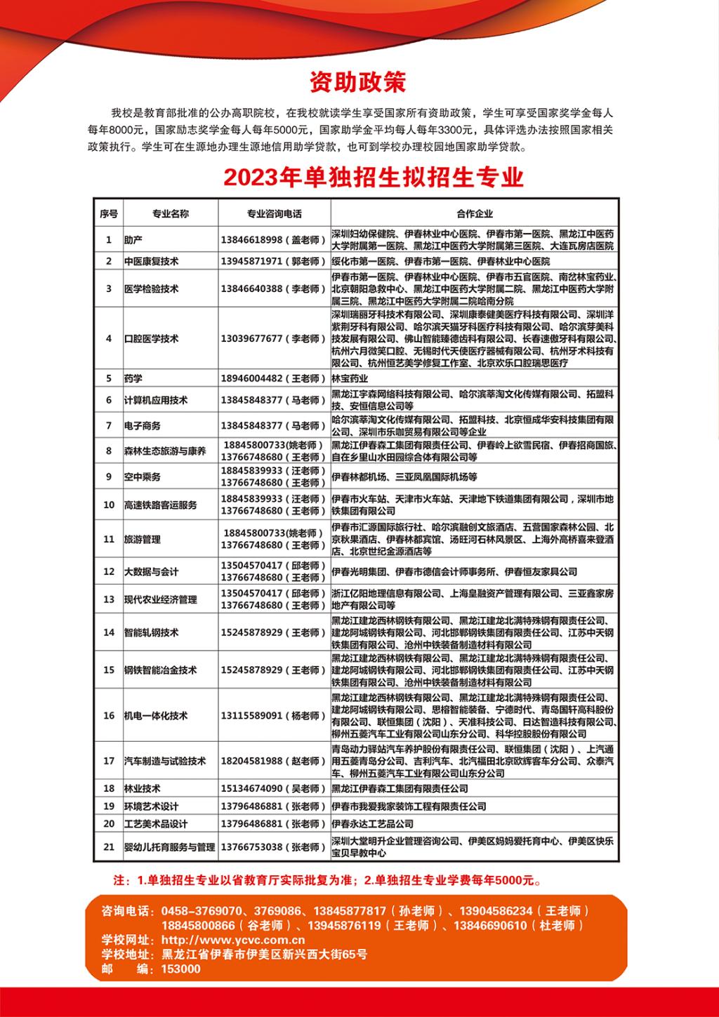 伊春職業(yè)學(xué)院2023年單獨(dú)招生簡章