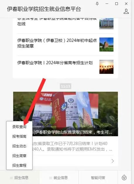 考生可登錄“伊春職業(yè)學院官網(wǎng)”或關注“伊春職業(yè)學院招生就業(yè)公眾號”,第一時間查詢自己的錄取情況。