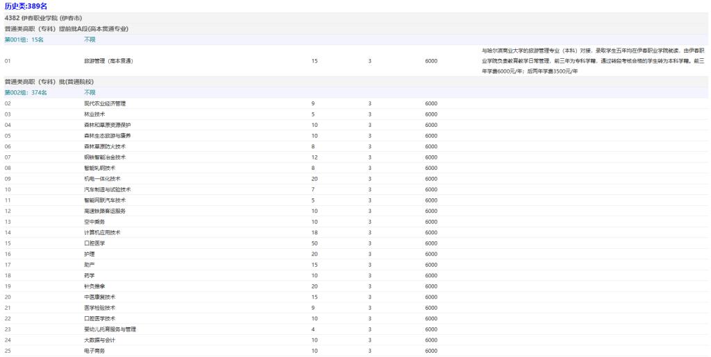 伊春職業(yè)學院2025年黑龍江省招生計劃