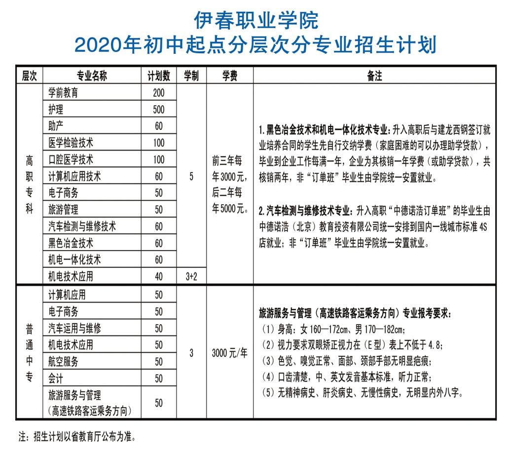 伊春職業(yè)學(xué)院2020年初中起點(diǎn)分層次分專業(yè)招生計(jì)劃
