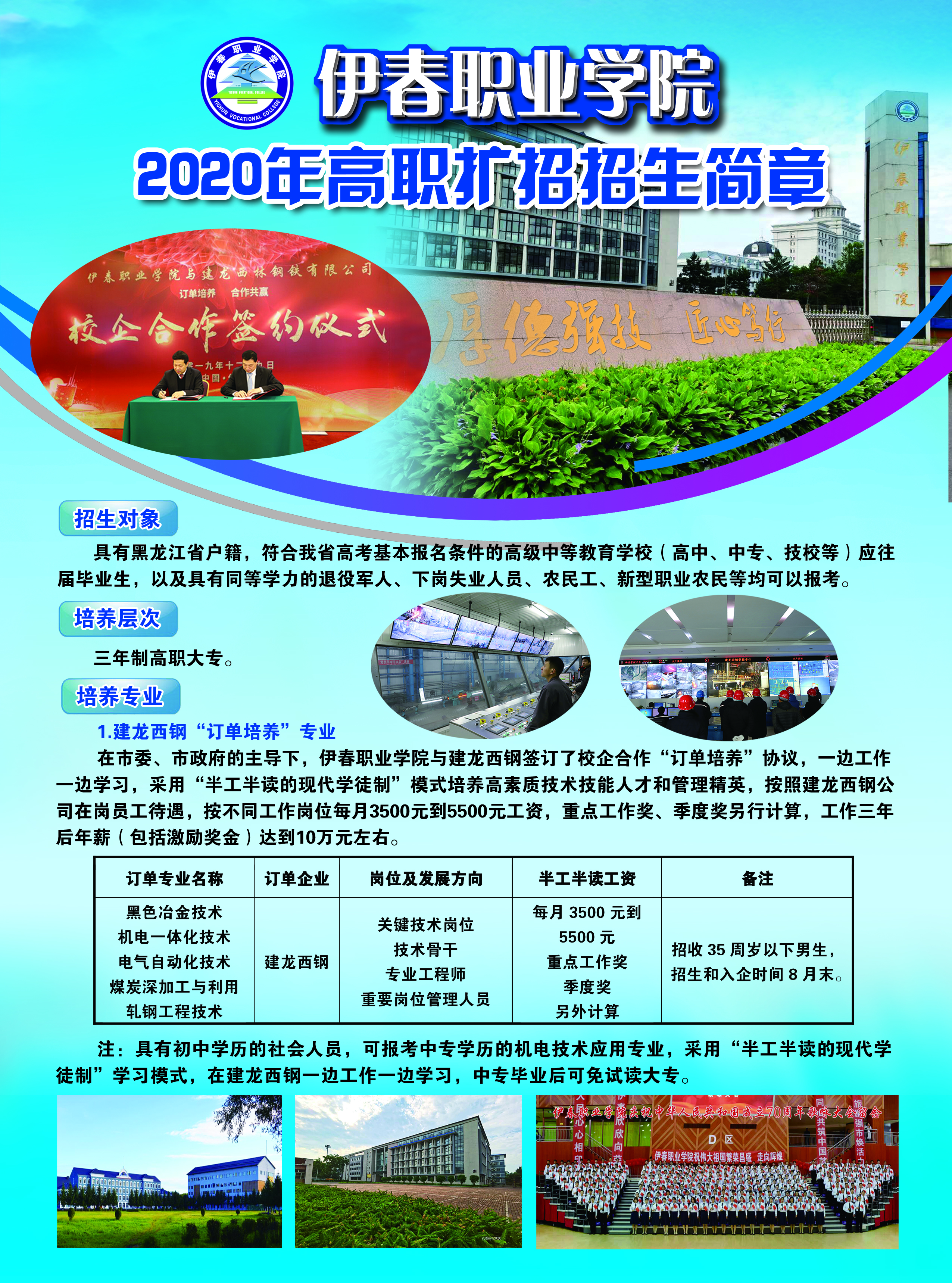 伊春職業(yè)學(xué)院2020年高職擴招招生簡章