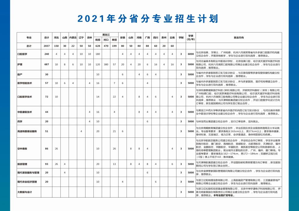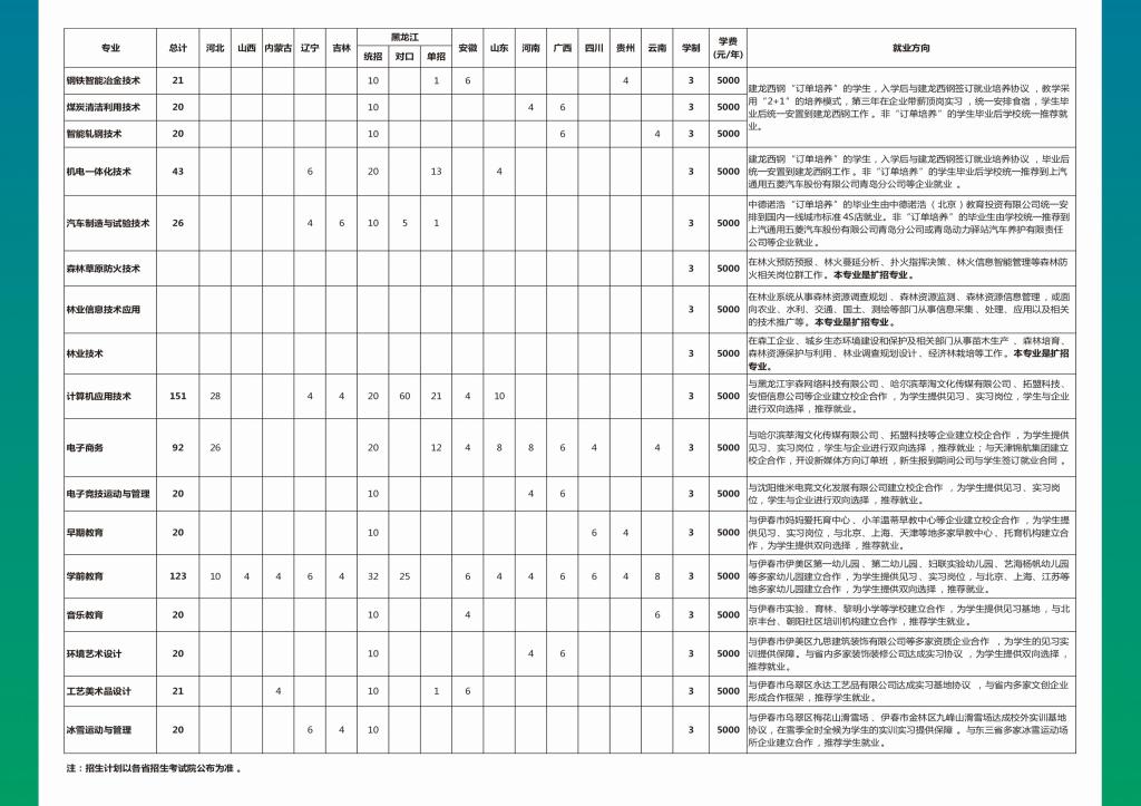 伊春職業(yè)學(xué)院2021年分省分專業(yè)招生計(jì)劃