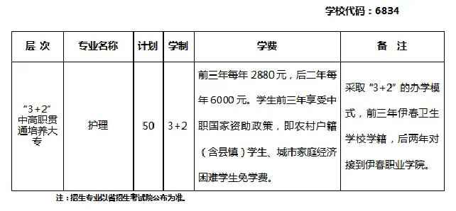 伊春衛(wèi)校3+2貫通培養(yǎng):前三年2880元/生/年,后兩年6000元/生/年。
