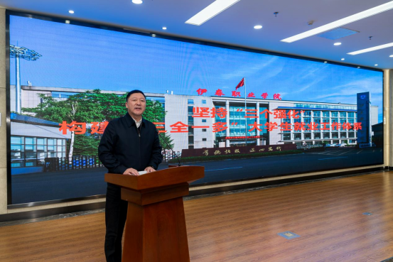 他談到學(xué)校堅持把提升關(guān)鍵辦學(xué)能力作為提高人才培養(yǎng)質(zhì)量、支撐大學(xué)生充分高質(zhì)量就業(yè)工作的核心任務(wù),不斷優(yōu)化專業(yè)和課程設(shè)置、改進教育教學(xué)方法、提高教師能力素養(yǎng),把就業(yè)育人貫穿人才培養(yǎng)全過程,按照“國家急需、產(chǎn)教融合、供需適配”的原則,積極探索打造“金專、金課、金師、金地、金教材”路徑,推動知識圖譜向能力圖譜的全面轉(zhuǎn)化、傳統(tǒng)知識傳授到綜合技能培養(yǎng)的徹底轉(zhuǎn)向,以教育教學(xué)關(guān)鍵要素“小切口”全面推動職業(yè)教育“大改革”,多維度培養(yǎng)學(xué)生綜合能力。把深化產(chǎn)教融合作為推動就業(yè)工作的具體抓手,通過“現(xiàn)場工程師”“新型學(xué)徒制”“產(chǎn)業(yè)學(xué)院”“雙高”專業(yè)群、資源型行業(yè)緊缺人才培養(yǎng)基地、“云課堂+崗位實踐”“送教入廠”等形式,形成了“共建、共用、共管、共享、共擔(dān)”的“工匠人才”培養(yǎng)體系,為企業(yè)和基層定向培養(yǎng)“留得住、用得上、干得好”的技術(shù)技能人才。