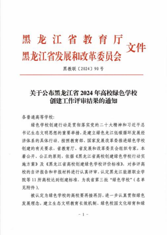 近日,《關(guān)于公布黑龍江省 2024 年高校綠色學校創(chuàng)建工作評審結(jié)果的通知》發(fā)布。伊春職業(yè)學院被認定為黑龍江省第三批“綠色學?!?,這是我校扎實推進生態(tài)文明建設(shè)的重要標志性成果。